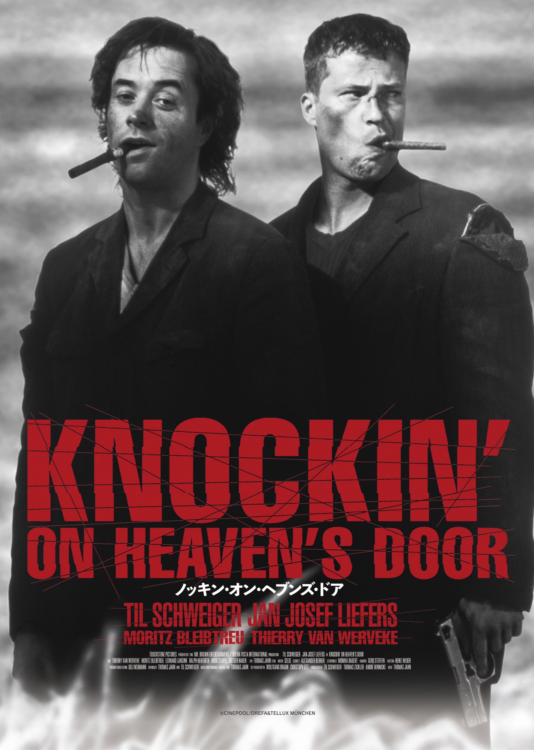 『ノッキン・オン・ヘブンズ・ドア』は、ボブ・ディランによるロックの古典「天国への扉」から取られたタイトル、シンプルなストーリーに破天荒なアクション、そして観る者の心に残るラスト。1997年の初公開当時ポスト・ニュージャーマン・シネマの決定版と評され、ドイツ国内で350万人を動員し大ヒット、日本国内でも単館系劇場興収の記録を叩き出し、2009年に日本版リメイクも制作されました。